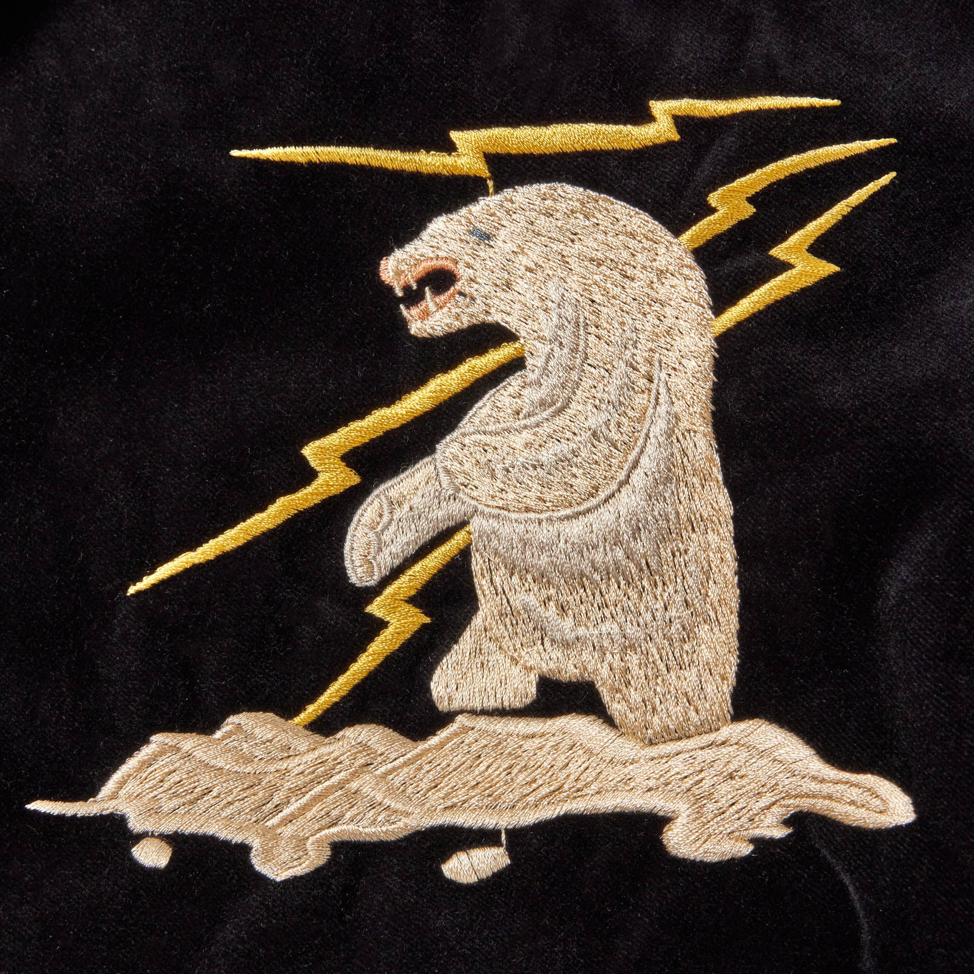 コットン別珍のジャケットは、ベトナムジャケットの型をベースとし、中ワタを挟み込んだ防寒性に優れた一着。アラスカ熊の刺繍を施した。