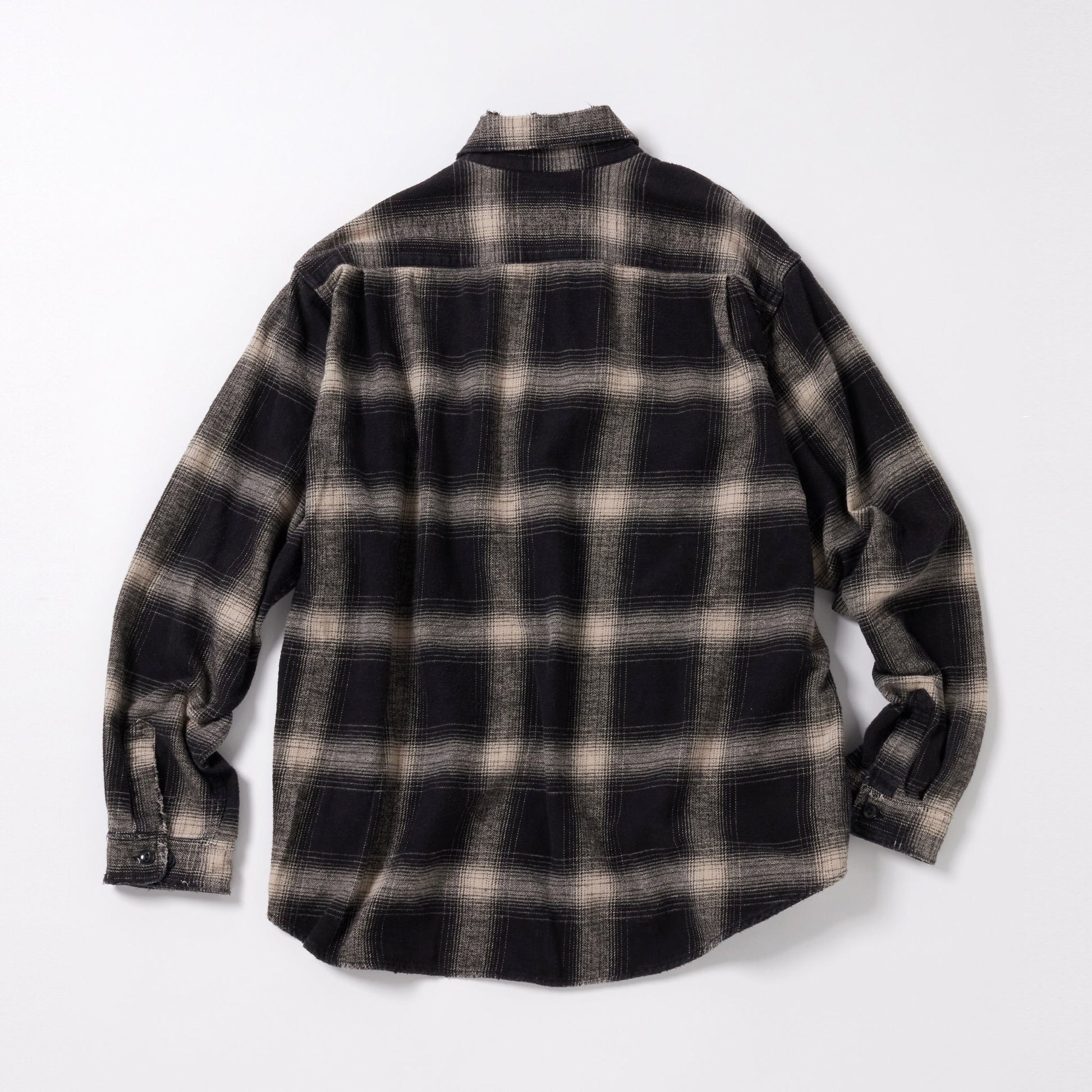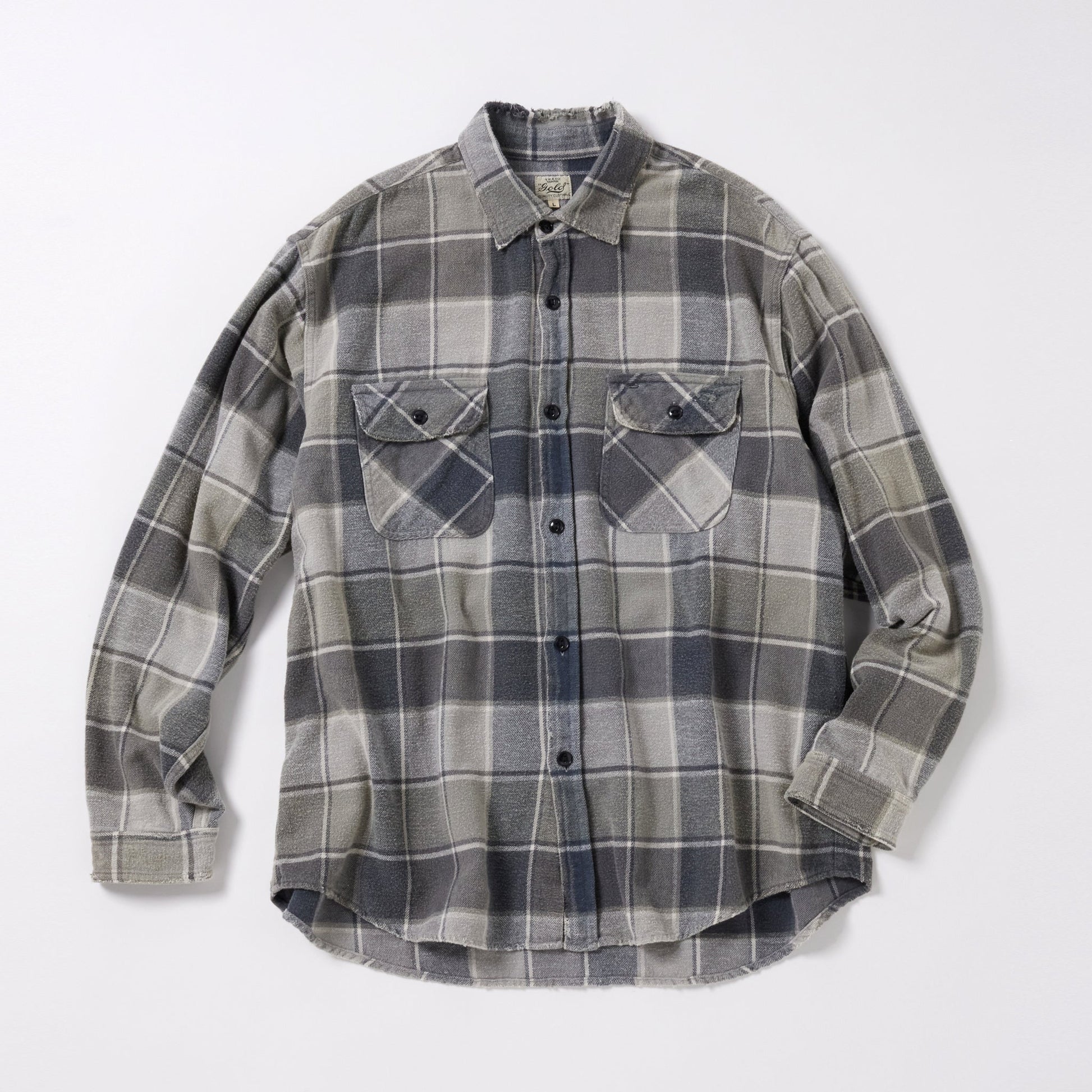 GL29196 / COTTON NEL CHECK WORK SHIRT DAMAGE AGED