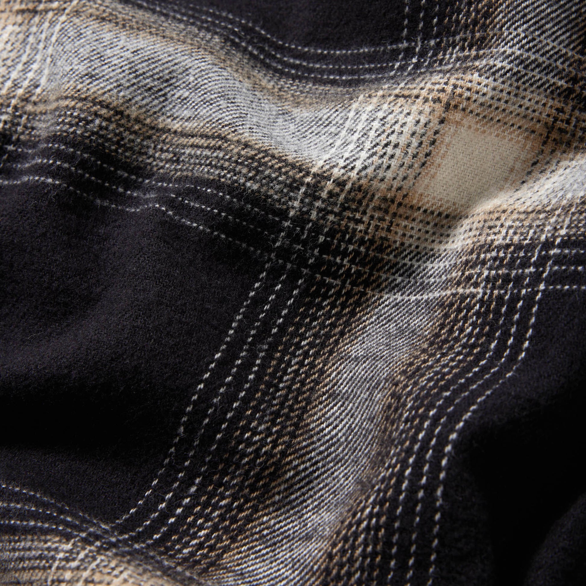 タテ糸16番単糸×ヨコ糸10単糸のムラ糸で織り上げた先染めのチェック生地は、古着のネルシャツから柄や配色を組み作り上げた素材。旧式の吊編み機で編んだ裏毛素材のフードを取り付け、単体でレイヤーされたデザインのシャツは、アームホールを広めに設定しゆったりとしたシルエットにすることで、着用の際のストレスがない着心地になっている。袖カフスにボタンを2つ付ける事により袖口が調整可能なシャツアウターとしても着用できる一着。