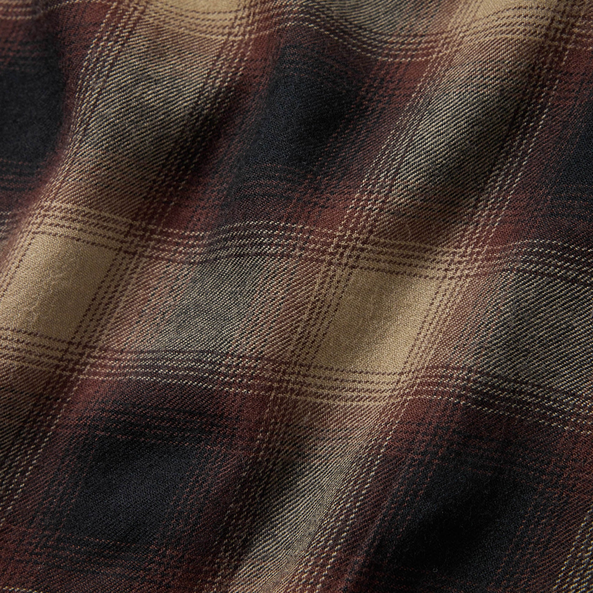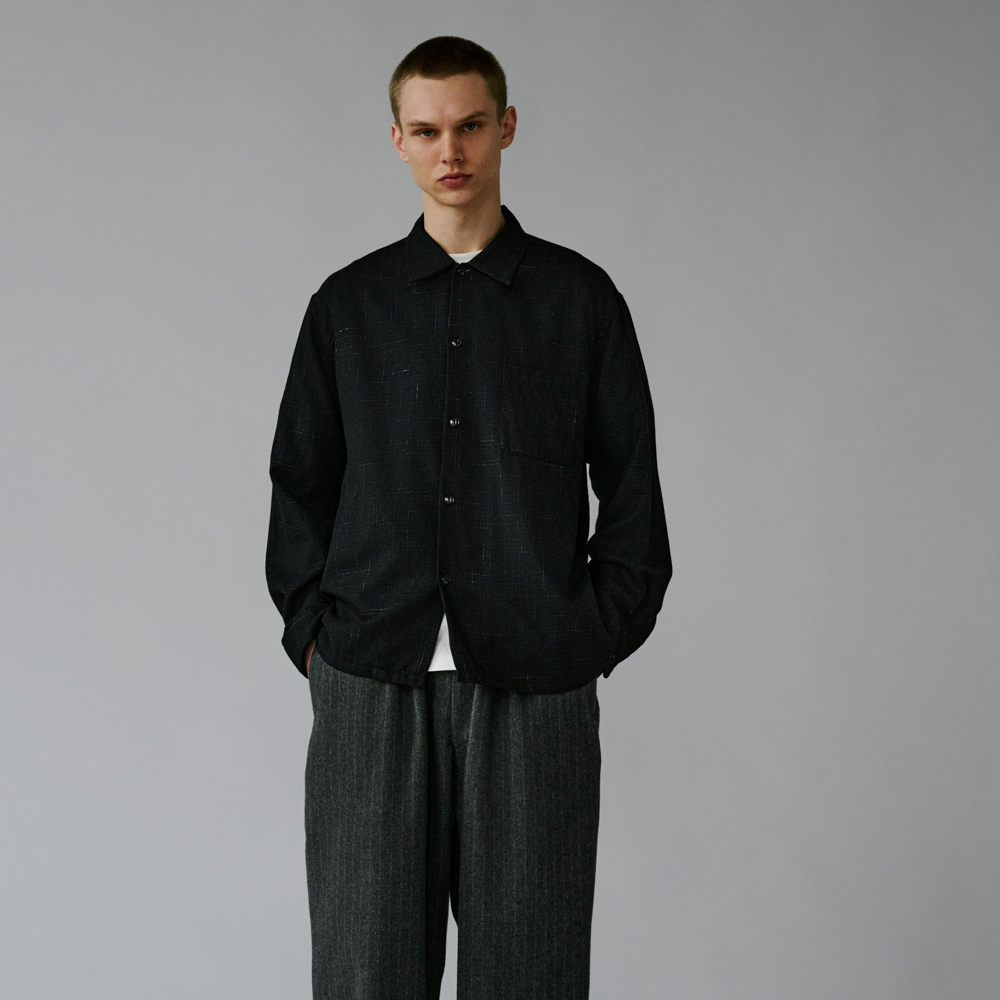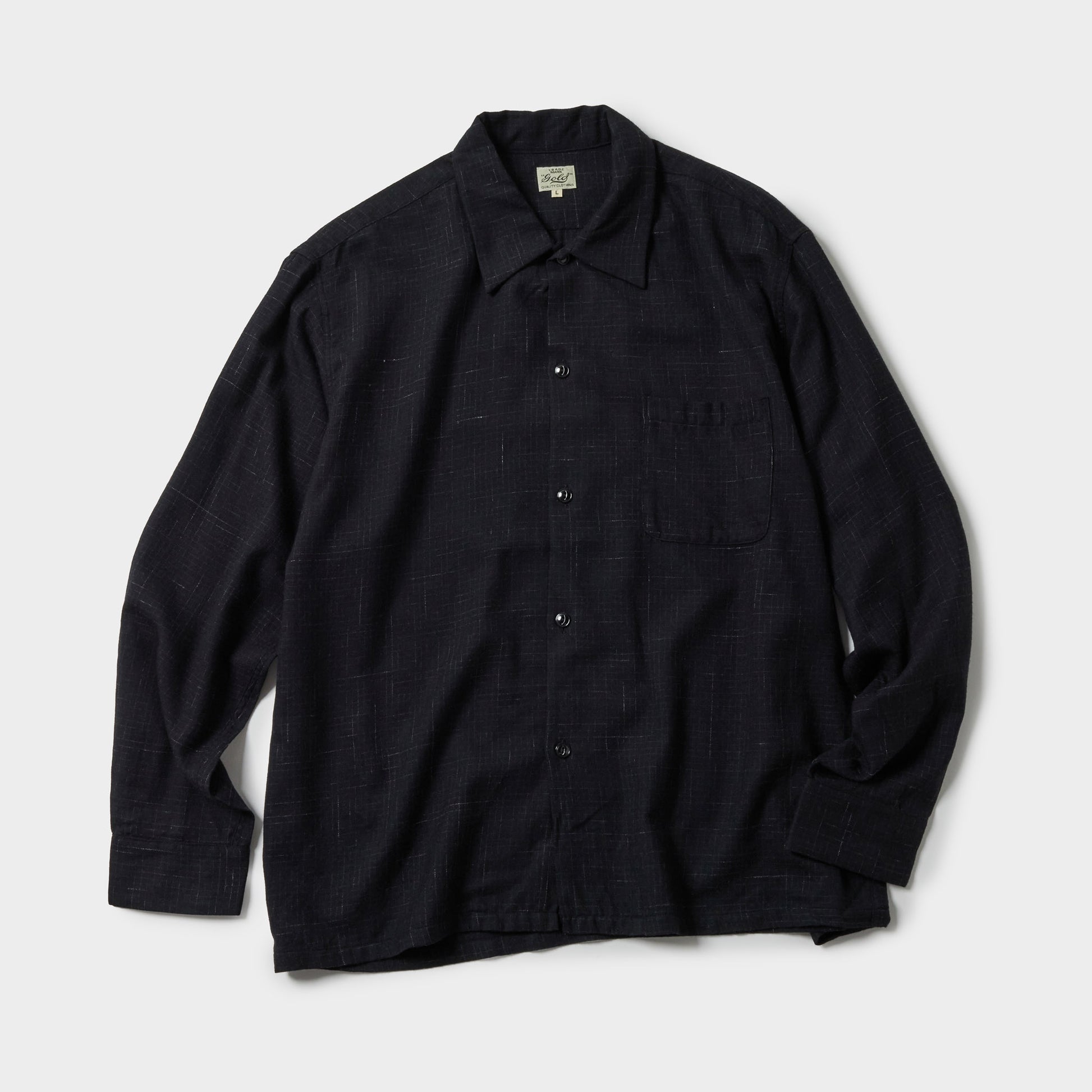 上質なスーパー120ʼsウールで織り上げられた先染めのウールチェック生地。BLACKは絣りチェック、BROWNはオンブレチェックとなっている。定番のボックス型オープンシャツに仕上げた。