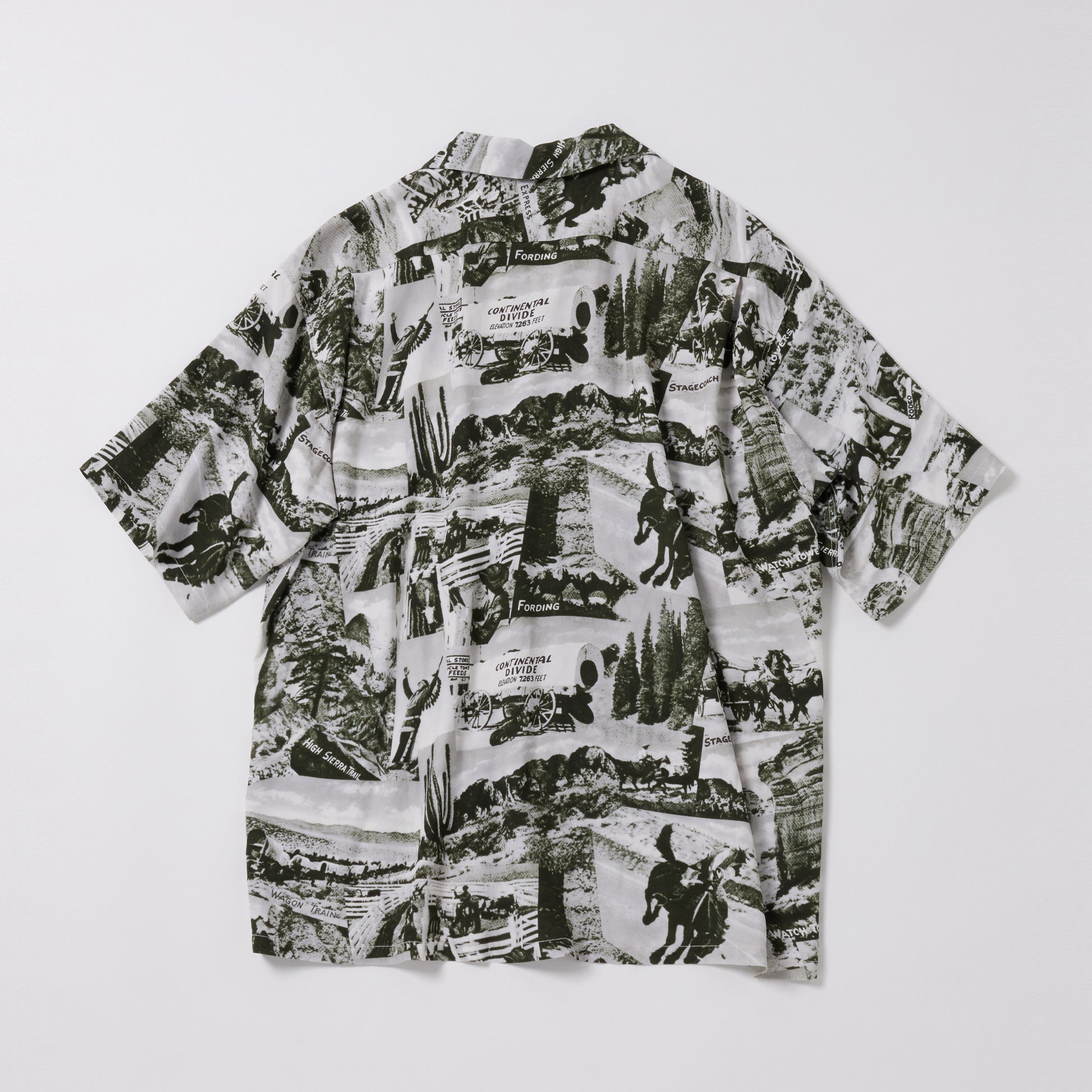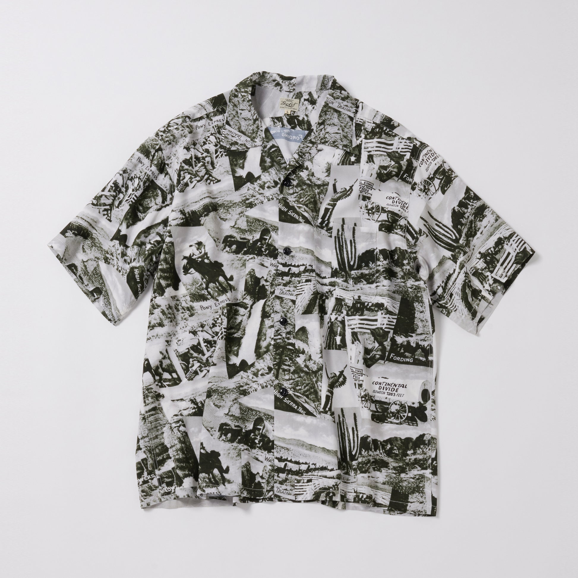 「パニオロ」とはハワイのカウボーイを指す言葉で、1800年代のカウボーイが家畜を馴らす風景が描かれたアロハシャツ。型は1950年代のシャツをもとに製作したブランド定番のボックス型シルエット。