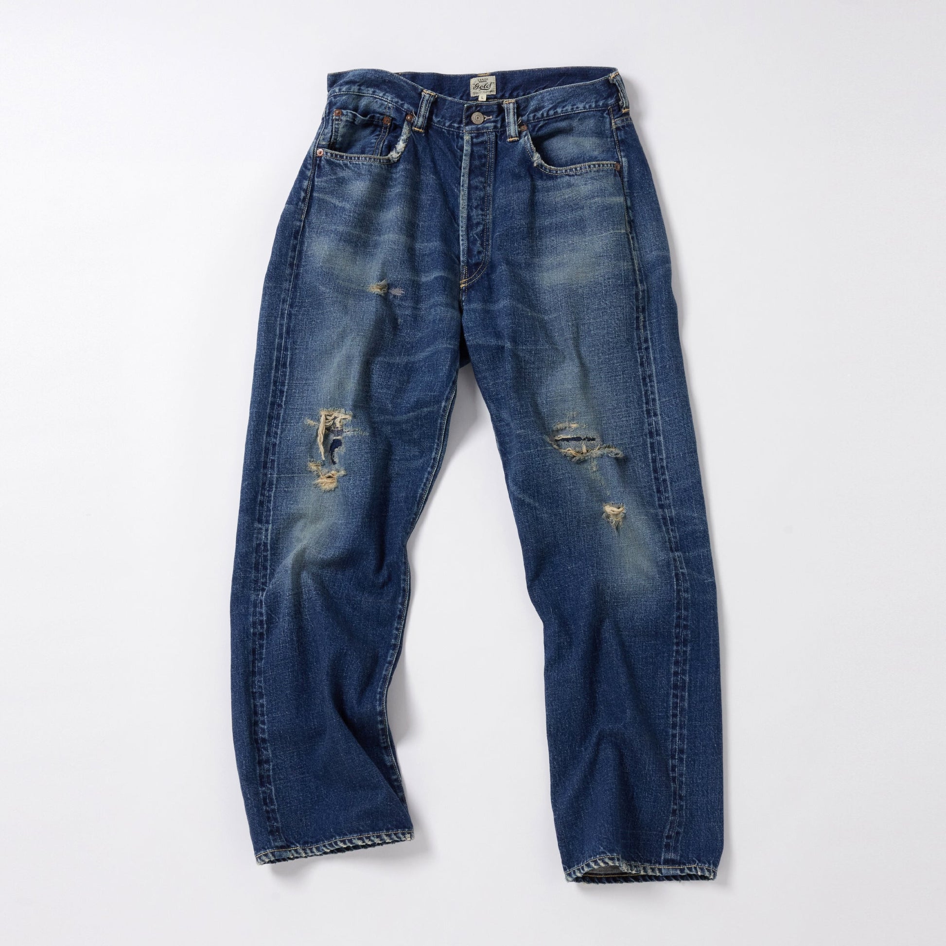 GL42428H / RECYCLED WASTE SUVIN COTTON YARN 11.5oz. DENIM 5POCKET STRAIGHT PANTS VINTAGE WASHED