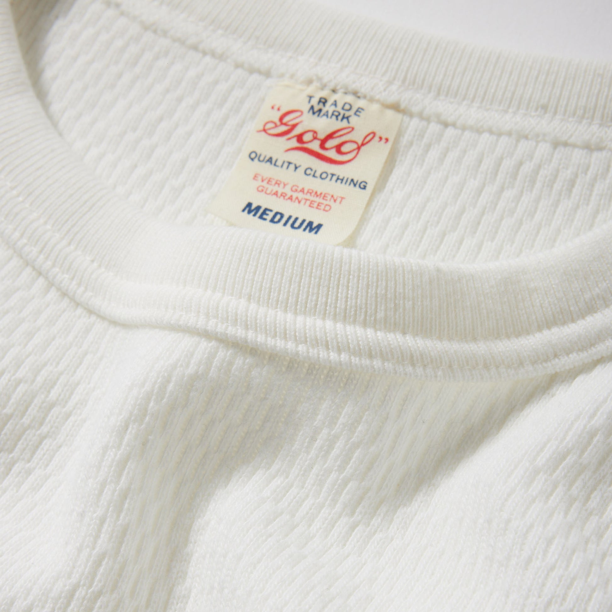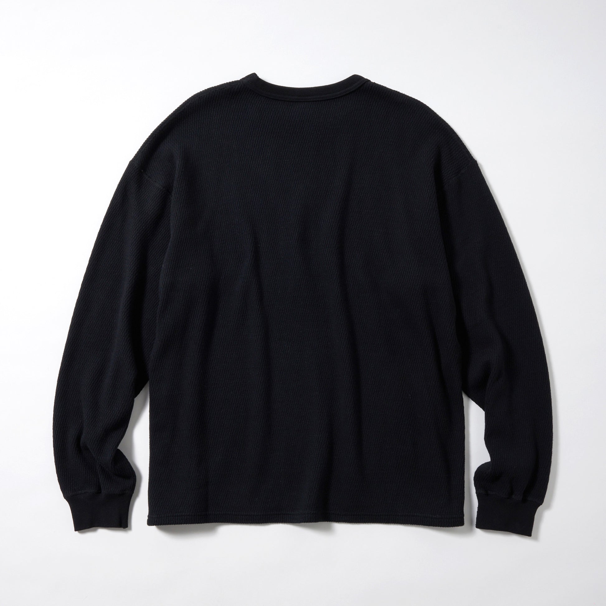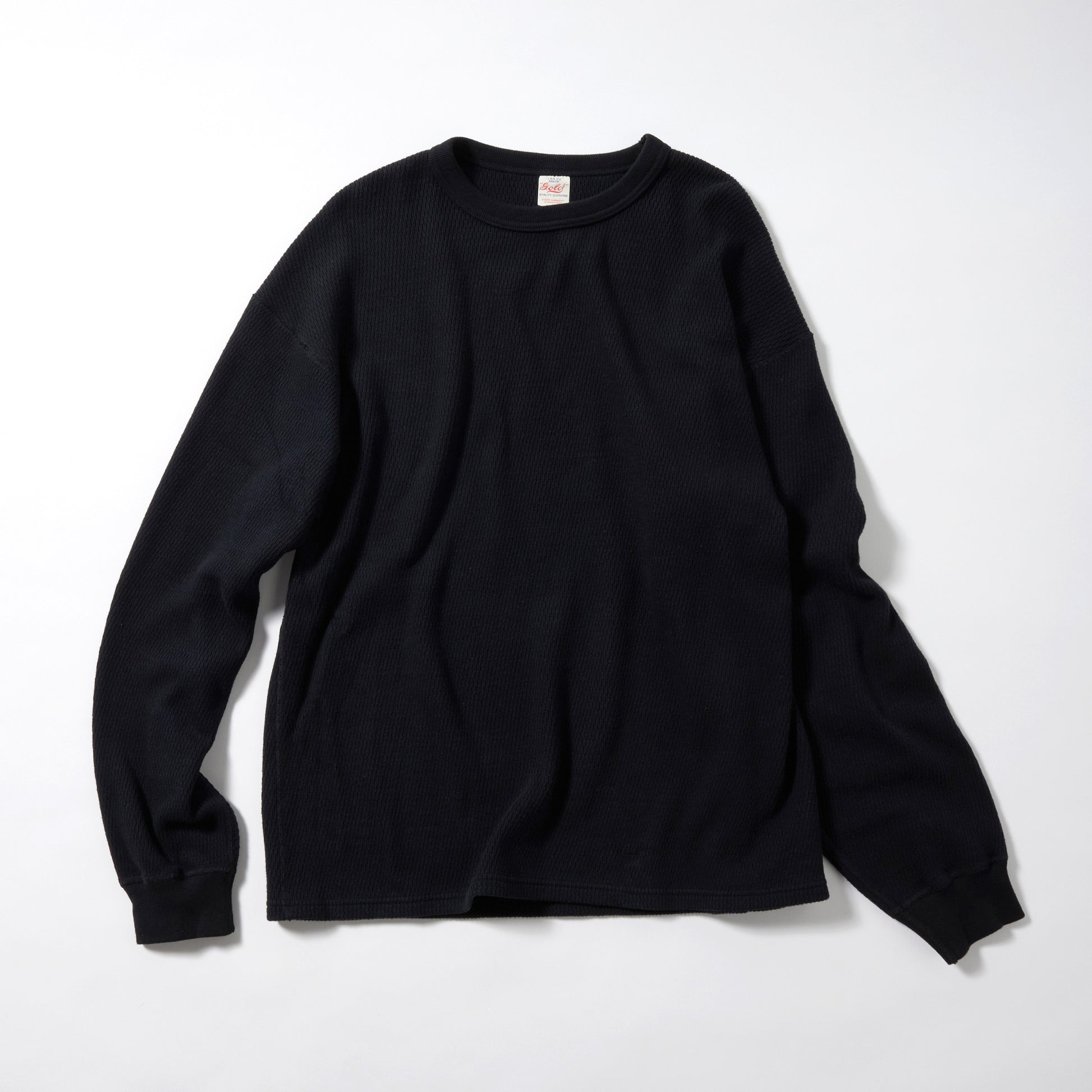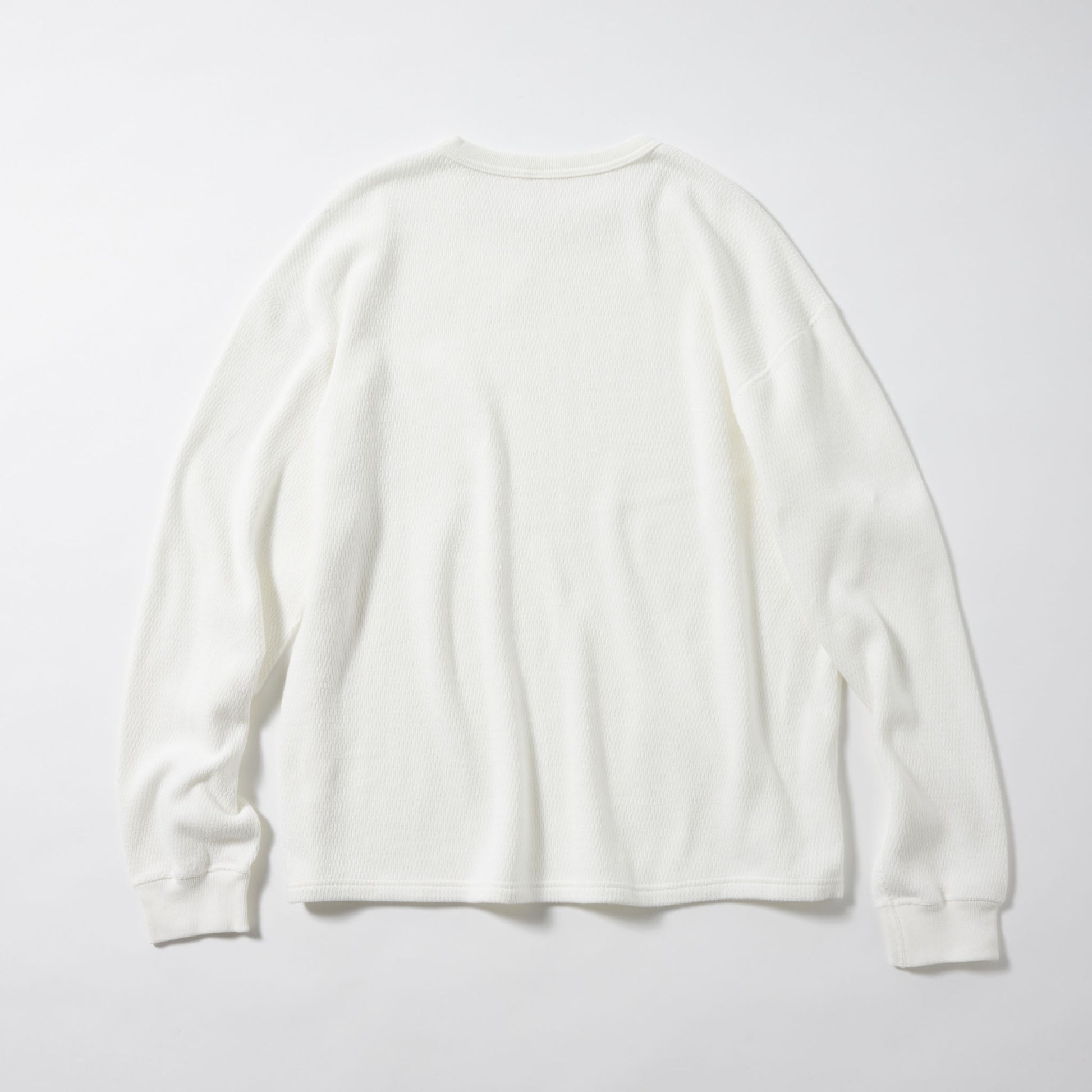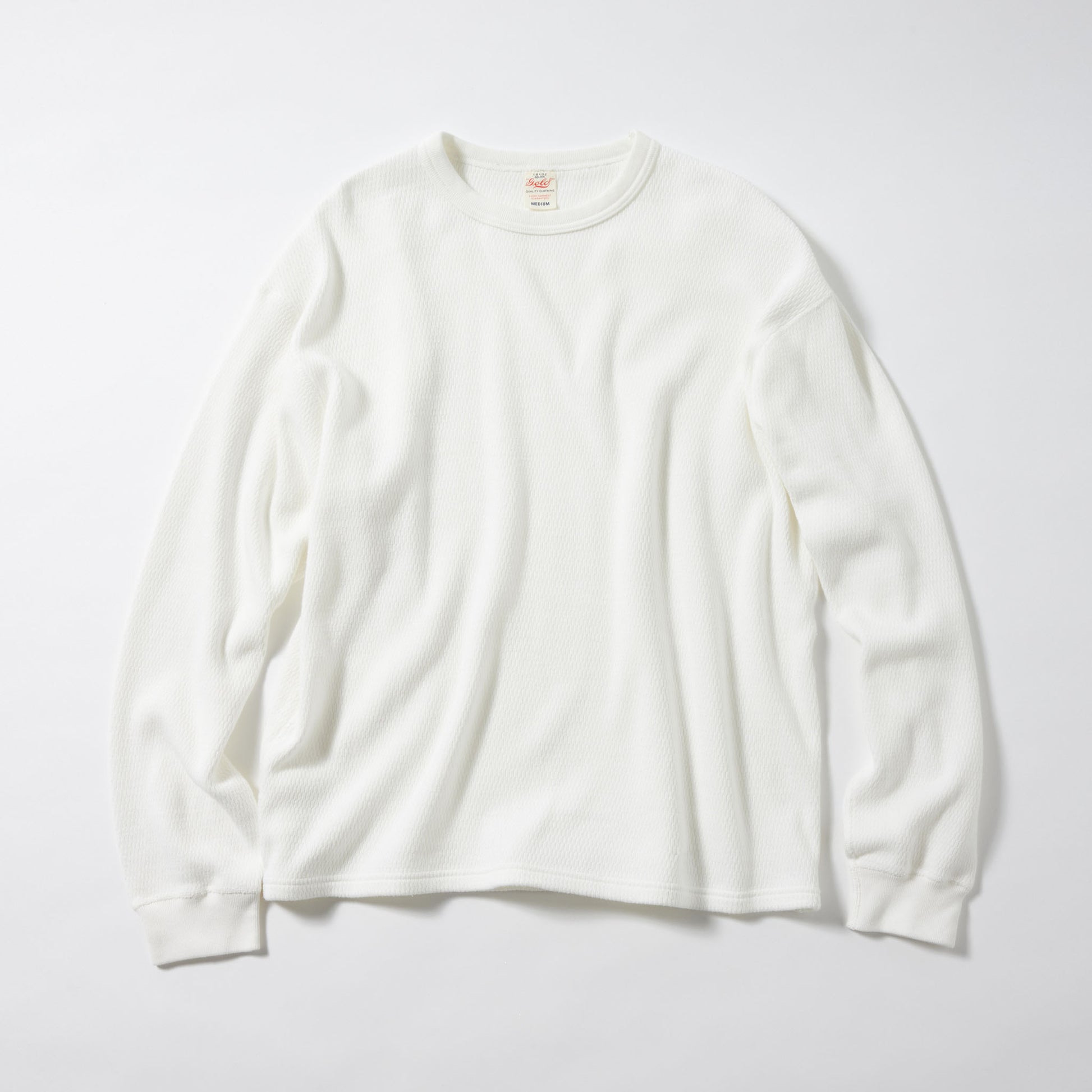 ブランド定番の10番単糸で編み上げたサーマル素材。定番のレギュラーシルエットのロングスリーブTシャツは、軍サーマルらしくフラットシーマ(4本針)の縫製仕様を採用している。